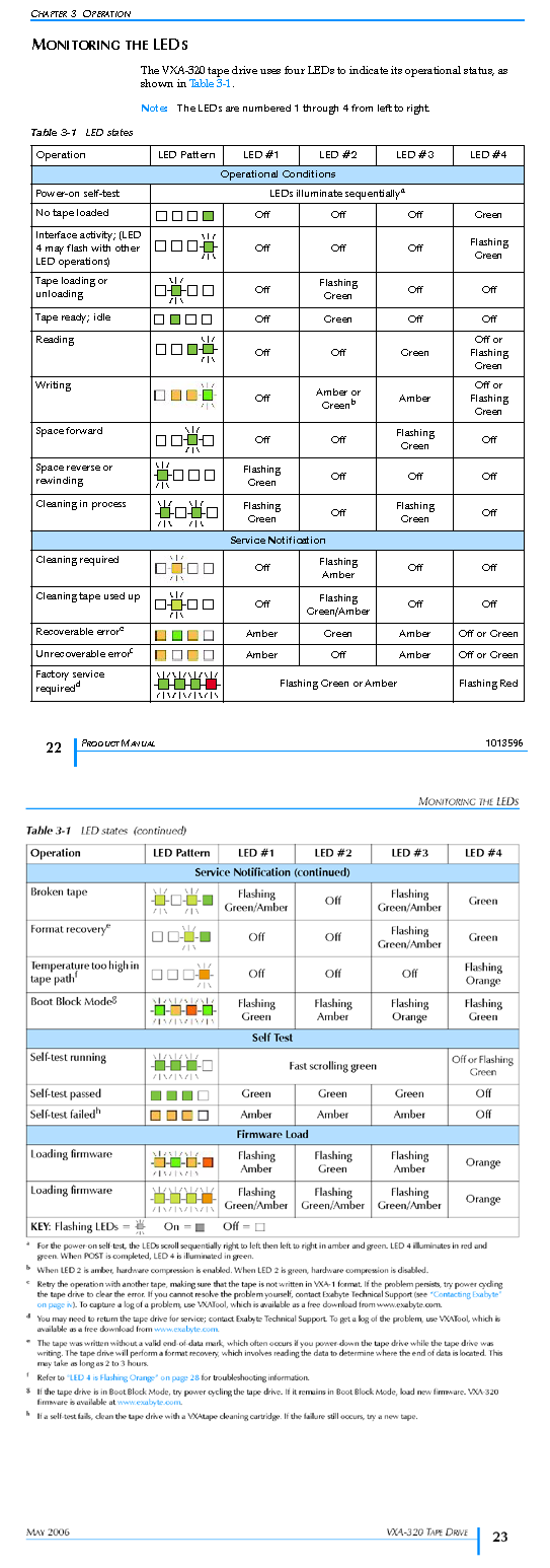 Tandberg VXA LED Status VXA Diagnostic & Autoloader Self-Test |